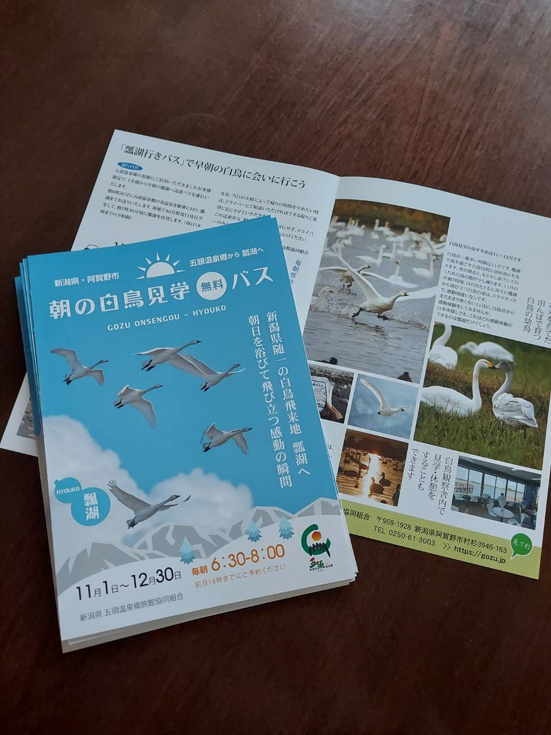 五頭温泉郷では毎年白鳥見学バスを運行しています。